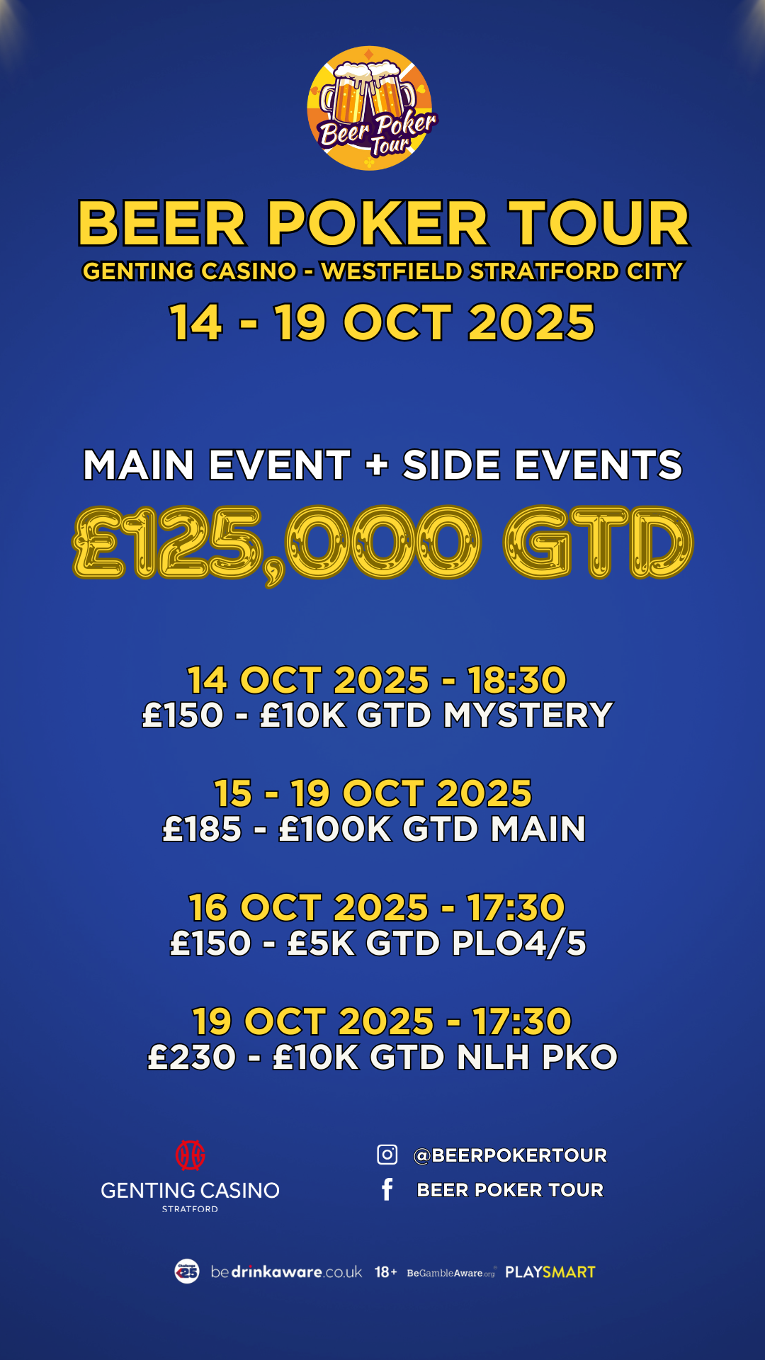 - A £10K GTD Mystery Bounty, £10K GTD PKO and £5K GTD PLO4/5 Side Events!